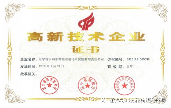 根据《高新技术企业认定管理办法》有关规定,经公司申报、地方初审、专家审查、公示等严格的申报程序,最终设计院公司被认定为辽宁省2018年第一批高新技术企业并荣获高新技术企业证书。