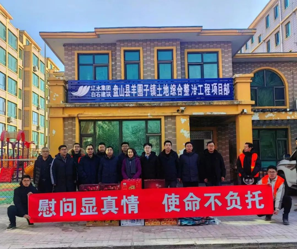 徐欣指出,现在正值寒冬,工期紧、任务重,务必要提高质量和安全生产意识,设计院公司和白石建筑公司要做好后勤保障工作,一线同志们要注重防寒保暖,以实际行动共同保障项目进展安全有序。徐欣要求,在完成征地的前提下,要保证设备人员投入,抓住冬季土方施工黄金期,通过合理布局,力争圆满完成2024年泡田的目标任务,给盘山县交出一个优质工程、放心工程。随后,徐欣一行来到项目部驻地,代表集团党委向一线员工致以诚挚的问候并发放慰问品,鼓励大家坚定信心,奋力前行。最是情深岁寒时,春节将至暖意浓。领导们的亲切关怀令项目部员工深受感动、倍受鼓舞。大家纷纷表示,2024年要继续大力弘扬“坚韧不拔、敢为人先”的辽水精神,以只争朝夕的劲头,团结一致、砥砺前行,为盘山县旱改水、盐改水EPC总承包项目贡献更大力量,为助力集团高质量发展再立新功。
